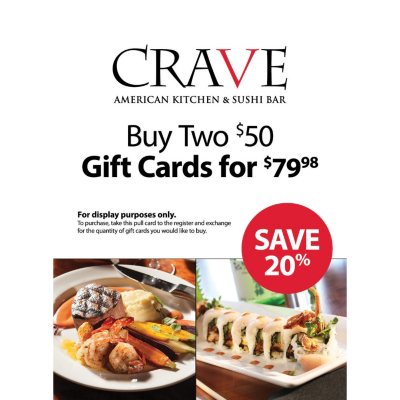 Crave American Kitchen Sushi Bar 100 Gift Card 2 X 50 Sam S Club